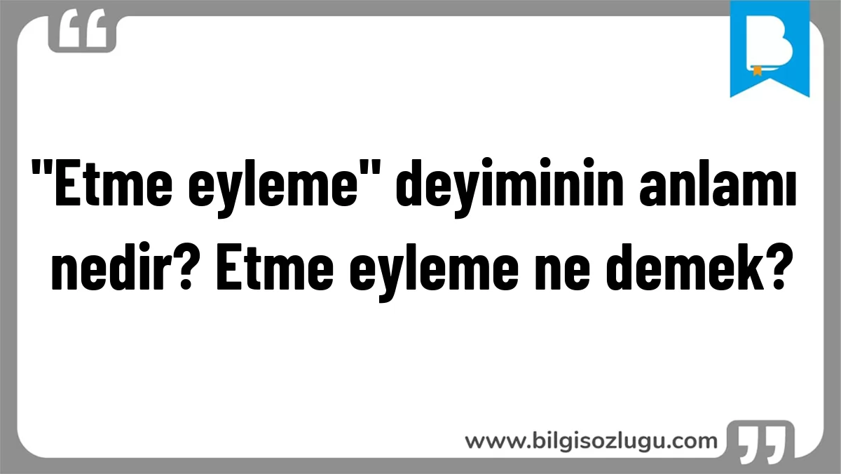 "Etme eyleme" deyiminin anlamı nedir? Etme eyleme ne demek?