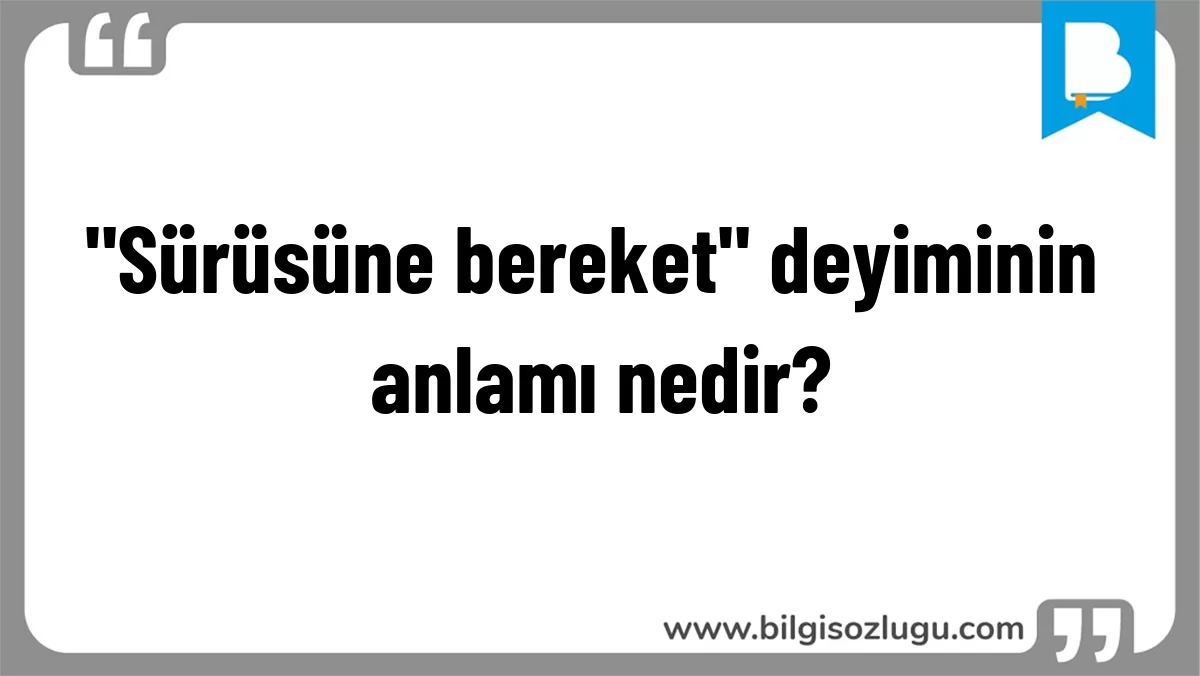 "Sürüsüne bereket" deyimi, dilimizde bolluk, fazlalık ve çokluk anlamlarını ifade etmek için kullanılan eski ve köklü bir deyimdir. Tarihsel süreçte hayvancılıkla uğraşan toplumlarda ortaya çıkan bu deyim, günümüzde her türlü fazlalık durumunu anlatmak için kullanılır. Hem dini hem de manevi açıdan bereket ve şükran kavramlarıyla ilişkili olabilen bu deyim, Türk kültüründe zengin bir anlam taşır ve gündelik hayatta sıkça karşılaşılan bir deyim olarak varlığını sürdürmektedir.